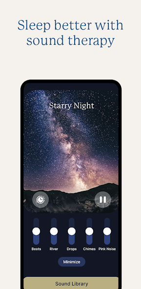 Le son peut vous distraire de votre oreille ou, par le processus d'habituation, aide votre cerveau à s'y adapter et, finalement, à l'ignorer. MinDear utilise l'expérience des paysages sonores de la thérapie sonore pour vous transporter dans un endroit différent, explorant les sons apaisants de la nature.