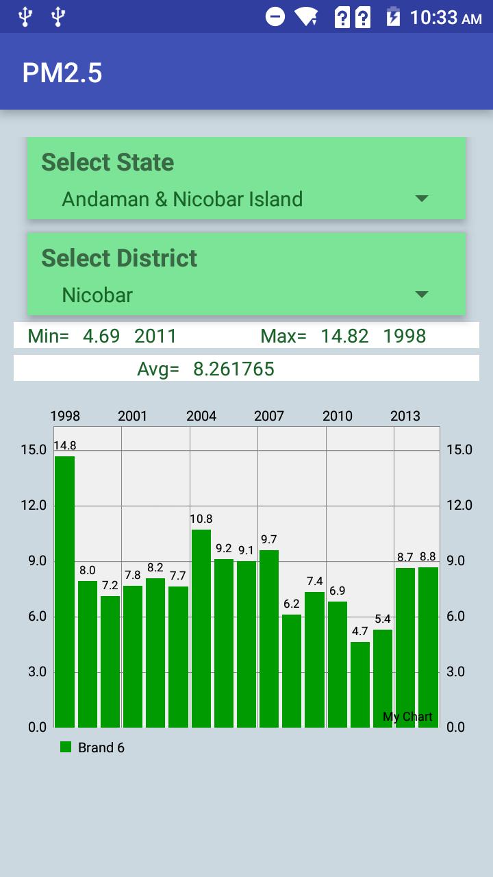 Vous pouvez savoir quelle année le niveau de pollution était le plus élevé et lequel était le plus bas. Il vous permet également d'obtenir la valeur moyenne et de le comparer avec d'autres États et districts de l'Inde.