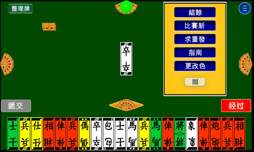 Les deux autres sont les cartes à quatre couleurs d'origine et TU SAC, qui utilisent les personnages des pièces d'échecs chinois. Les règles des jeux sont très similaires à Mahjong. Les matchs à quatre couleurs sont du rami.