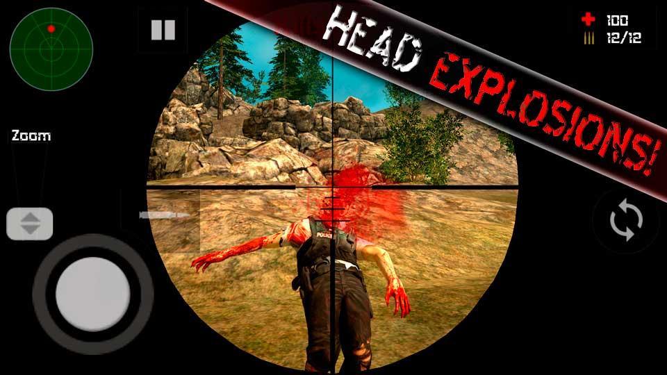 Localisez les zombies illustrés dans votre radar ou cachez-vous et attendez qu'ils viennent dans votre gamme de tir. Visez la tête pour les tuer rapidement. Soyez prudent, nos ennemis deviennent plus en colère et plus vite après chaque tir!