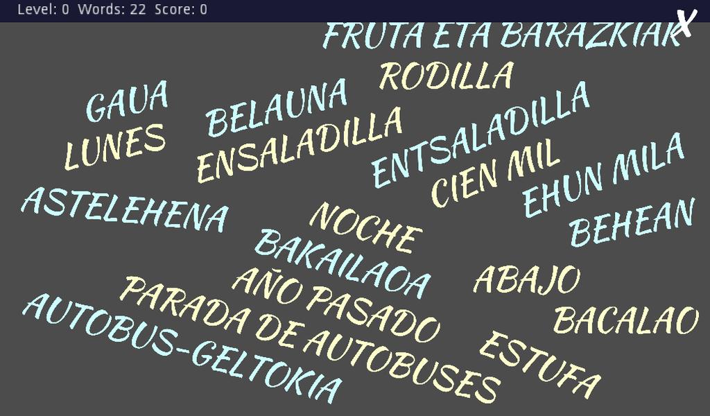 Je correspond aux mots Euskera-Castellano avec 10 niveaux de difficulté.
