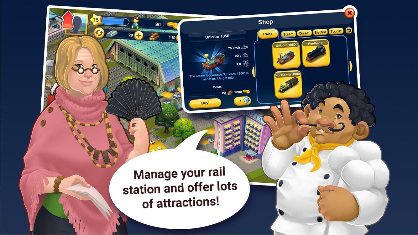 Le chef d'orchestre Carol vous montrera en ville et vous présentera les gens sympathiques tout autour de la gare. Rencontrez Mike, le travailleur musclé de la construction qui sait tout sur les pistes, Willy, le chef groupé mais adorable du contrôle de la signalisation, et Kim, le mécanicien énergique de l'atelier de réparation, qui vous aidera tous à construire et à maintenir des parties essentielles de vos opérations Railworld. Chacun a beaucoup de quêtes et de tâches à accomplir dans ce jeu de train et vous accompagnera dans votre voyage pour créer la gare de gigantes de tous les temps la plus réussie.