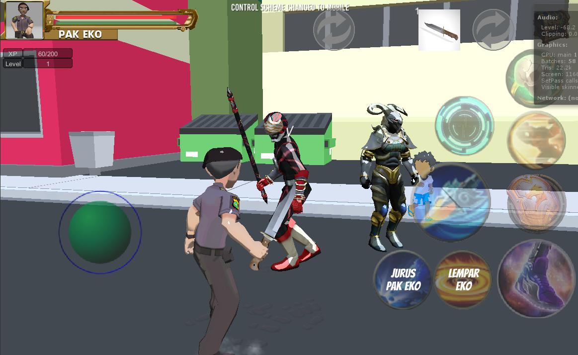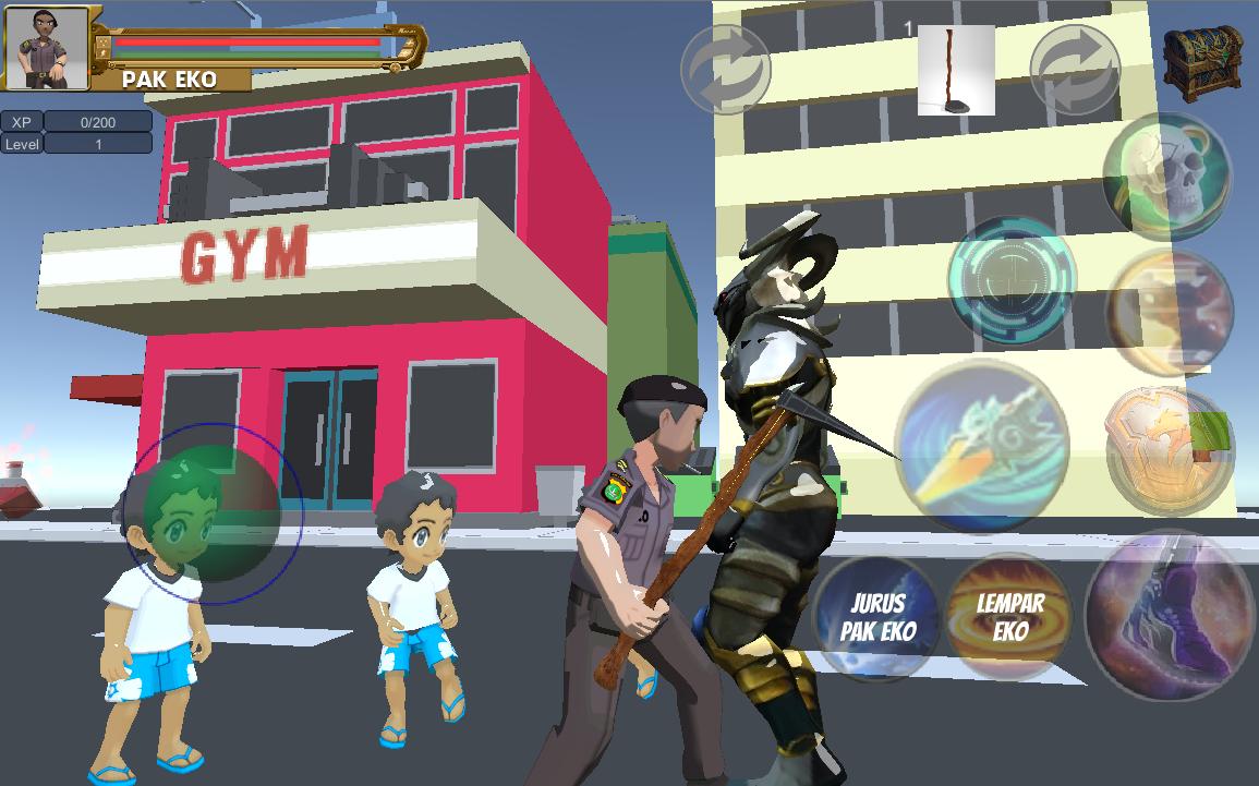 Inspiré en entrant Pak Eko, un policier qui est viral en Indonésie. La police Pak Eko est bonne pour lancer ses armes policières, et nous essayons de faire le jeu à Pak Eko en mode de combat RPG 3D et à l'aventure de Pak Eko. Votre mission en tant qu'officier de police est de protéger les enfants contre les attaques de zombies et de monstres maléfiques dans le centre-ville. Chaque fois qu'il y a un monstre ou un zombie, les enfants crieront "Pak Eko" et tueront tous les monstres maléfiques.