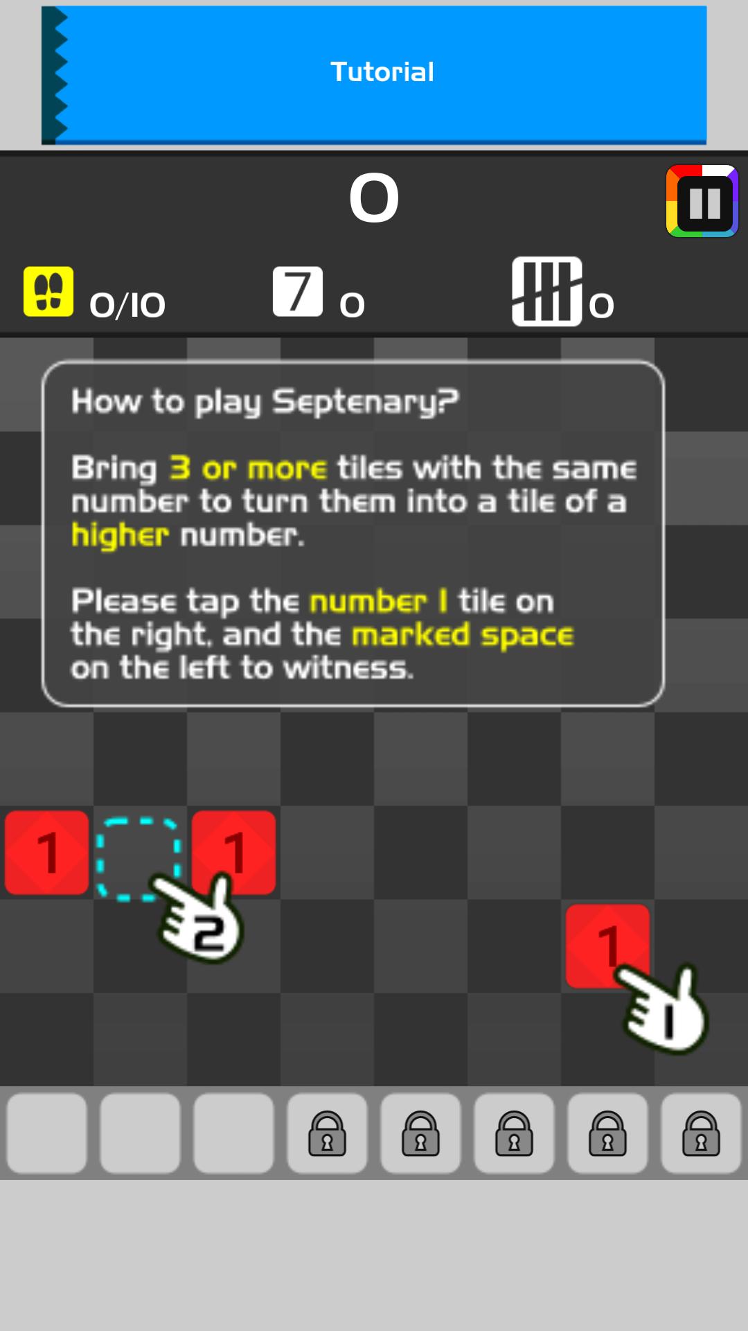 Septenary est un jeu de stratégie numérique addictif basé sur un mécanicien simple: déplacez les carreaux de numéro sur une grille 8x8 afin que les tuiles de même nombre se touchent et fusionnent dans un nombre plus grand. Plus le nombre est grand, plus le score est élevé. La fusion de plus de trois carreaux et la création de chaînes accordent des outils spéciaux qui peuvent aider dans des situations délicates.