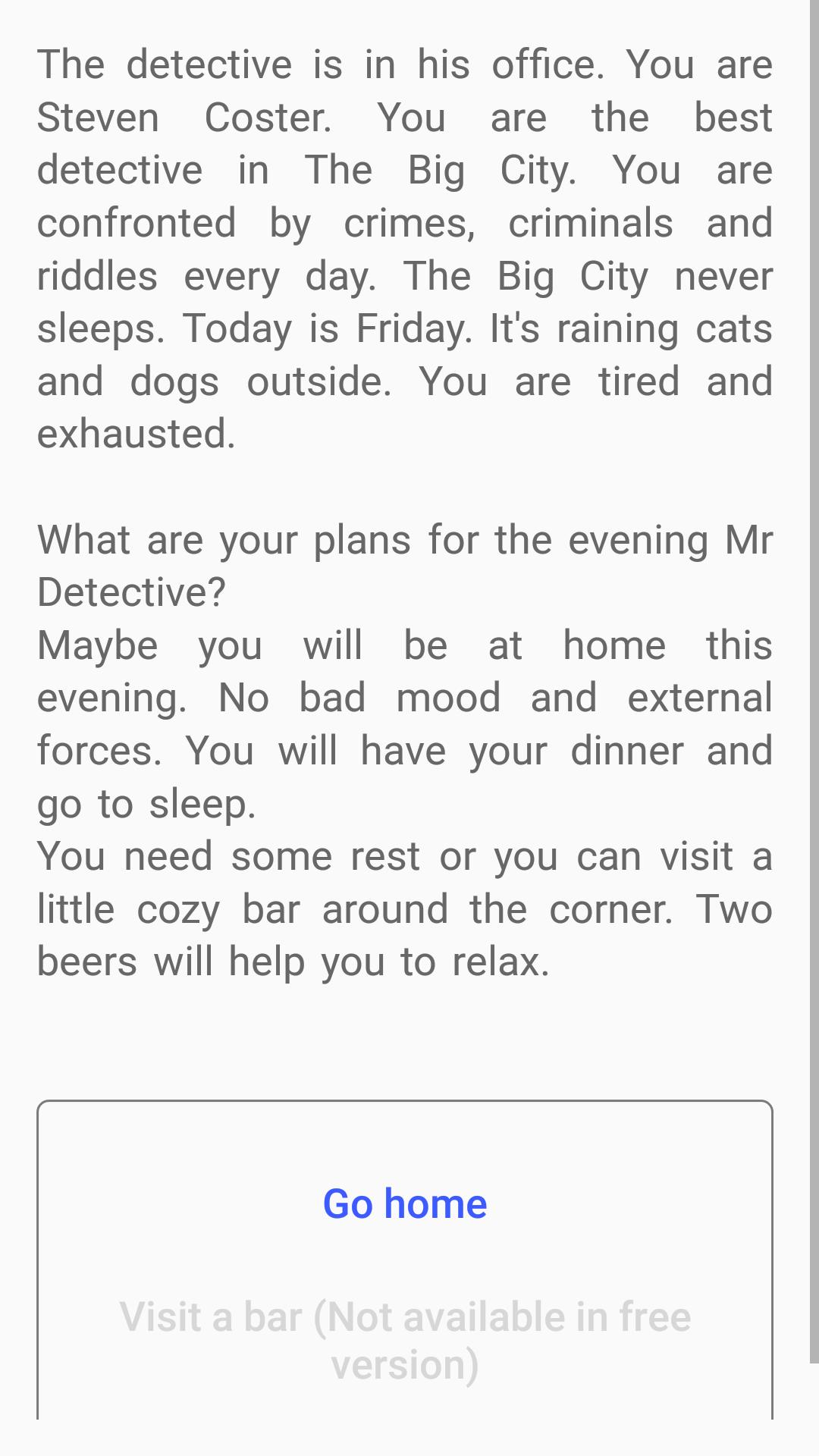 Un détective interactif basé sur le choix, où vos choix contrôlent l'histoire.