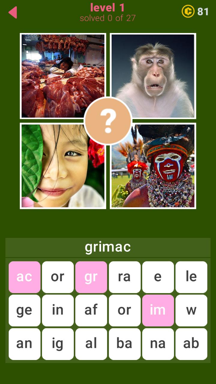 One word per photo. 27 words per level. 648 Words in the game. Can you find all of them? Sometimes you have to think beyond the obvious. Good luck!