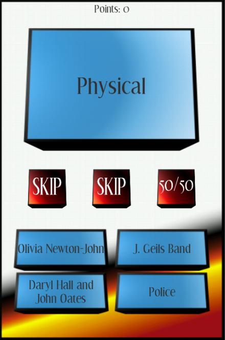 Do you remember the 80s? Find out with 80s Songs Quizzes! 80s Songs Quizzes features 50 of the top songs from the 1980s. Find out if you're the master of the 80s era music, or just a poser. 80s Songs Quizzes has five total quizzes, and gives you three lifelines per quiz for some help. Have some fun, remember the past, and download 80s Songs Quizzes now!