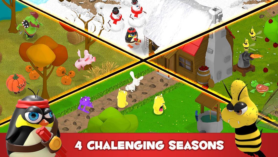 In this never-ending, fast-paced survival game, progress through all 4 seasons of the year and discover new enemies and strategies. Trap them with spikes, blow them up with cannons or dynamite, bite them with your guard dog, or lure them in with a scarecrow to better use your melee attack. It’s all about getting the job done!
