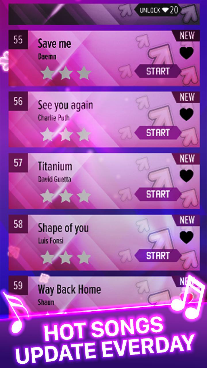 You can experience kinds of funny arrows and colors, don't hesitate to have a try! Follow the rhythm to tap the arrows of "Beat Audition - New Songs Piano 2018", avoid to slide the arrows.