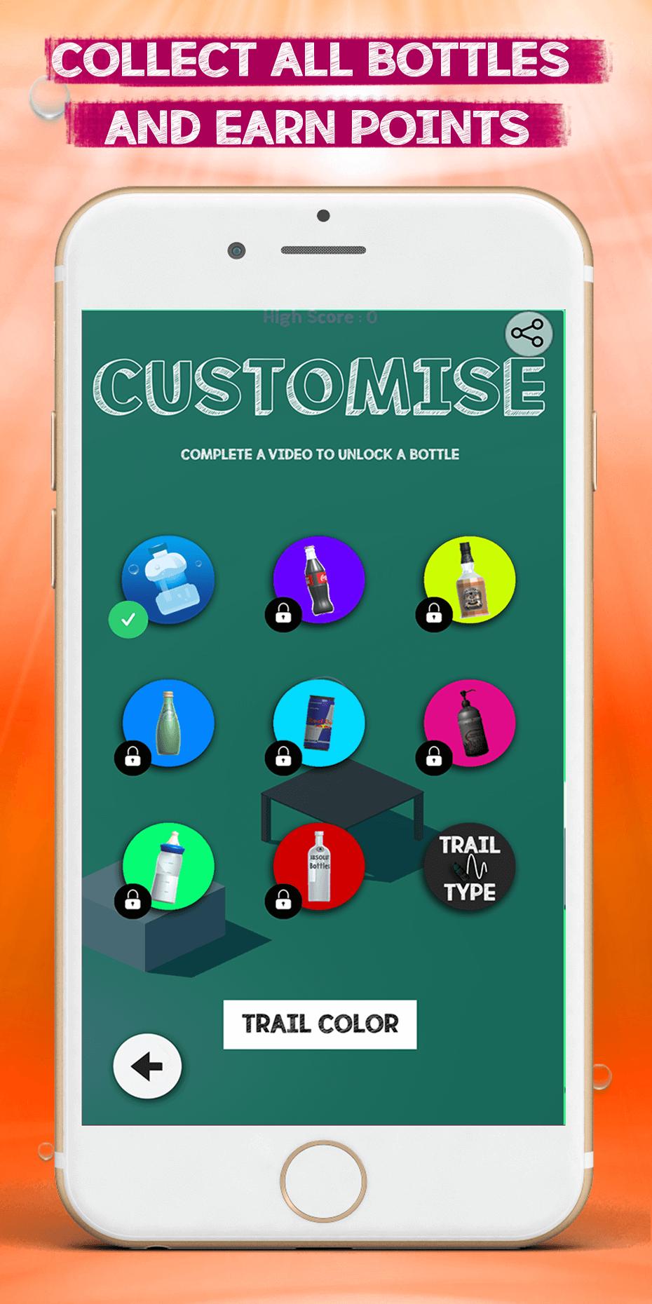 Get along with the movement: flip the bottle. Experience the game bottle flip Challenge to confirm your level. Share the flipping games with your friends and challenge them to pass your score.