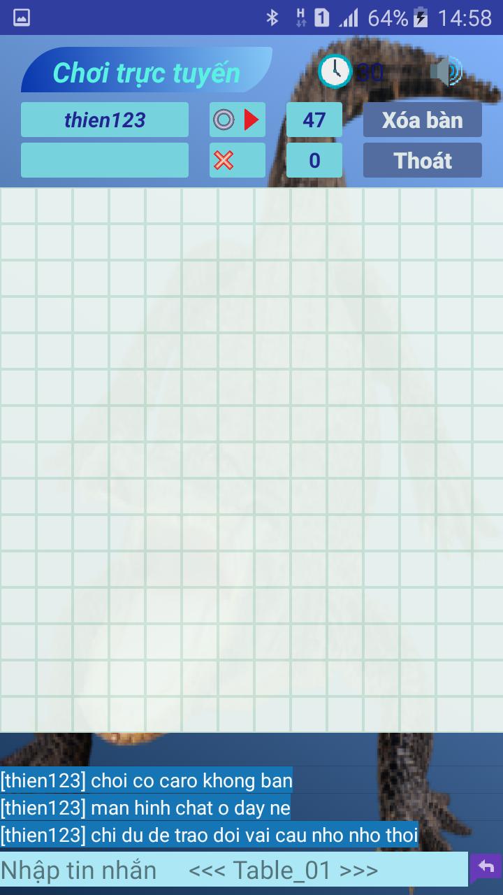 -There are two types of online caro table : fast rate (timer 30) and slow rate (timer 60)
