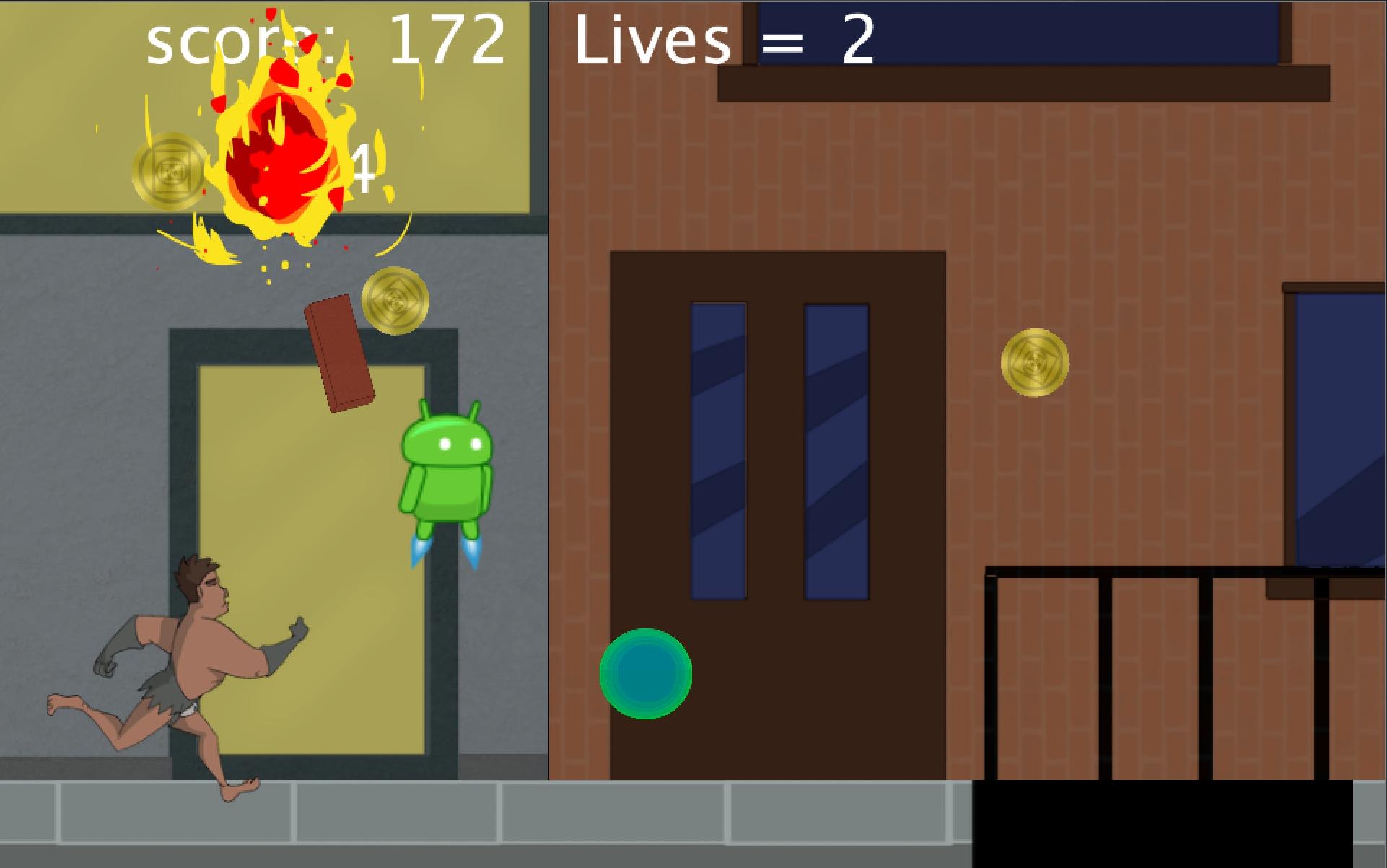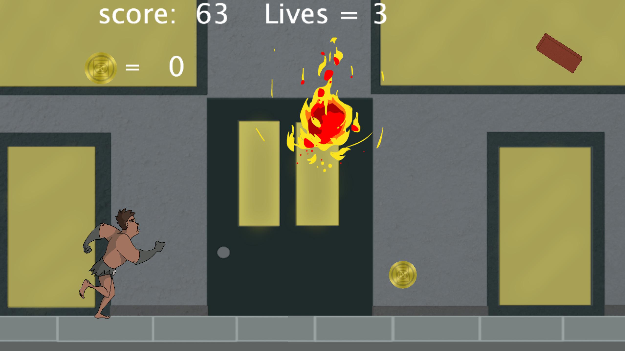 Play as a daring caveman thrust into the modern world and must to escape the crumbling city before it is destroyed. Run through a city, avoiding falling fireballs and flying robots while collecting coins!