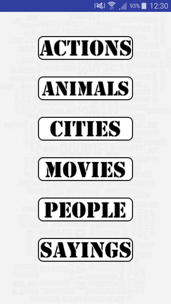 Many different ways to play! Play normal lists with over 700+ words! Play with categories such as animals, actions, cities, movies, people and more! You can even create your own lists!