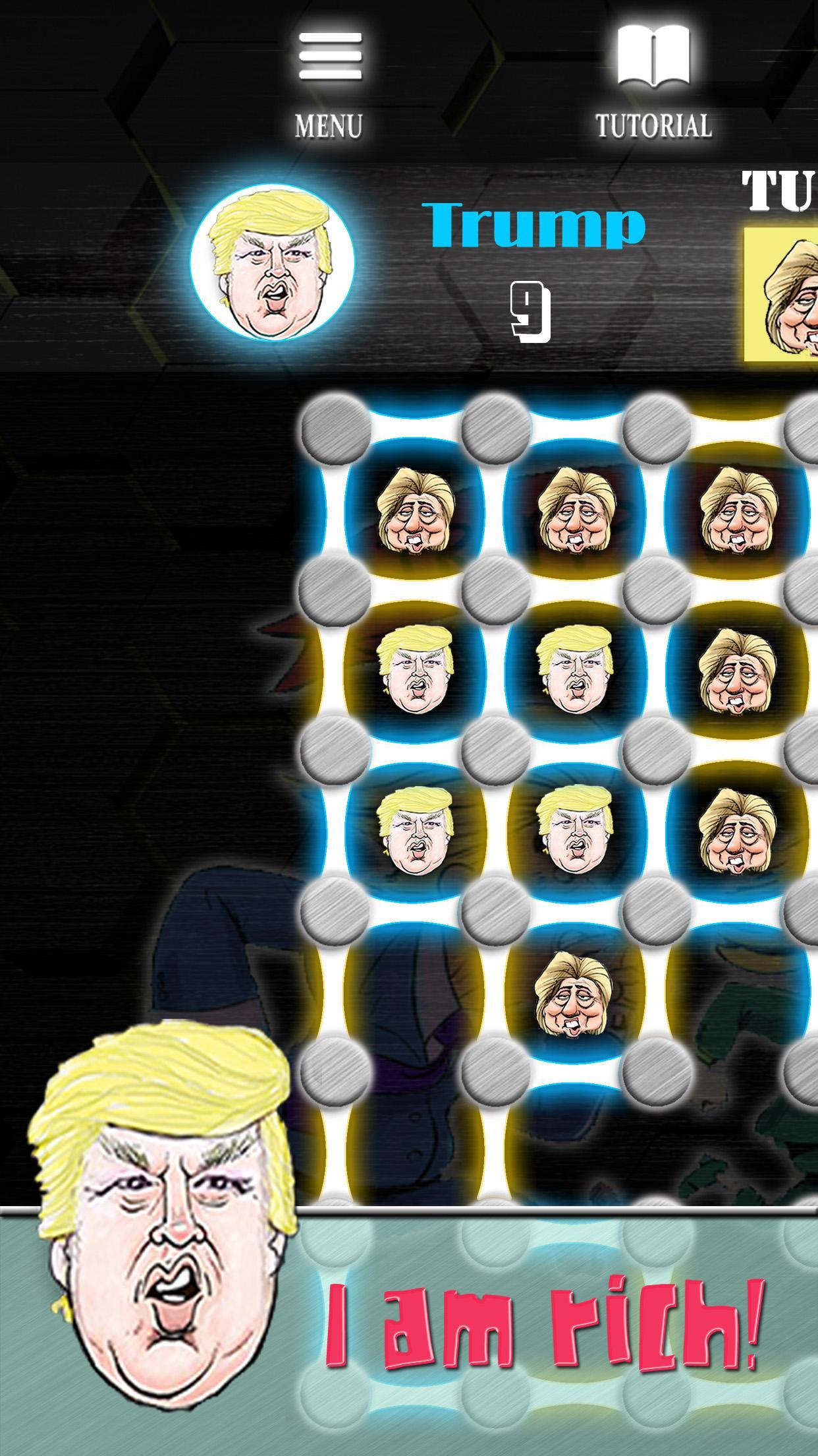 Clash Of Candidates 2016 is the most vibrant addictive Dots and Boxes game ever! You can choose your favorite US presidential candidate among republican party such as Donald Trump, Ted Cruz and Democratic party including Hillary Clinton and Bernie Sandwiches. Beat all other candidates of the 2016 presidential campaign in the United States. Get ready with Clash of Candidates and eliminate all others in the campaign!