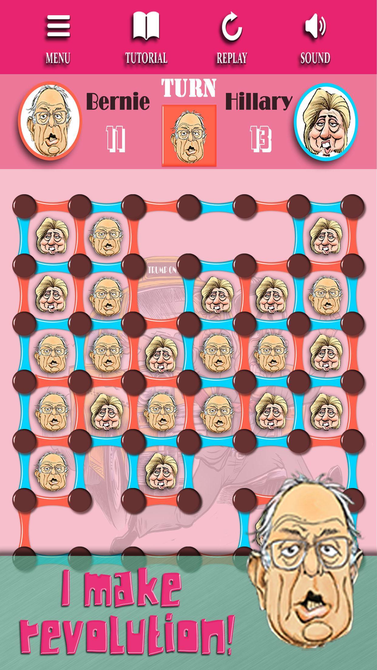 A Presidents War on Dots and Boxes Game. Bernie Sanders? Donald Trump? Up to U!