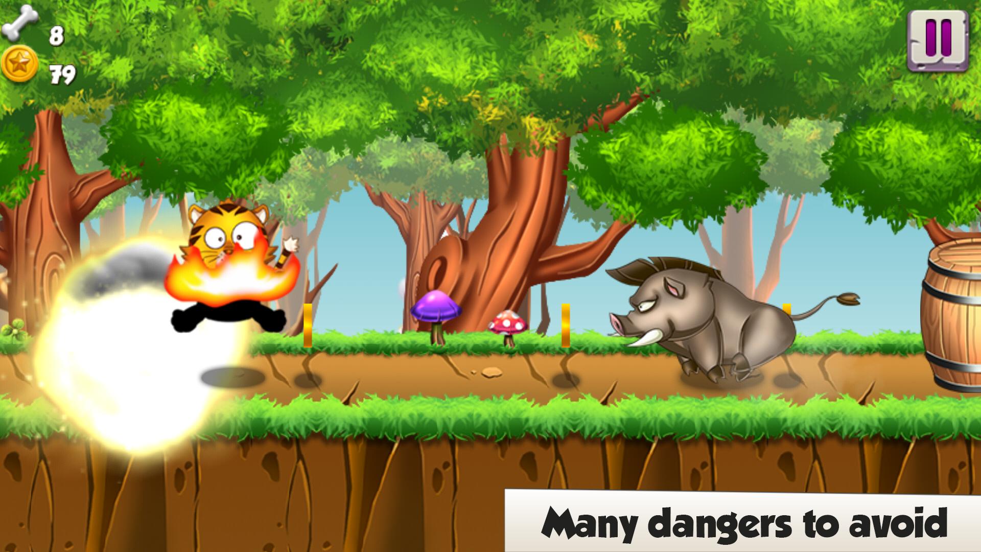 Crazy Tiger is a kind of runner game. The Tiger always feel hungry even he ate too much meat and he runs like the crazy man to find and eat meat as much as possible. Help him find meat by eating another animals.