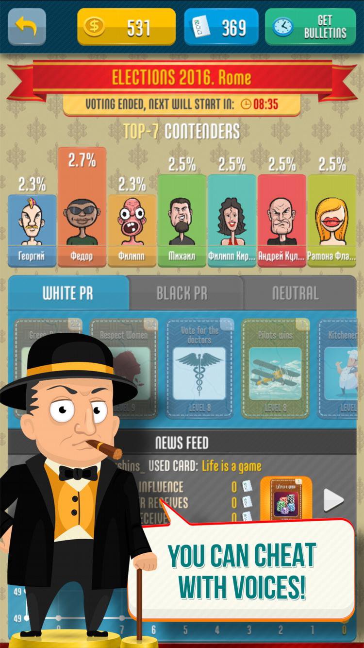 - In the game, you can cheat in the Elections using the techniques of black and white PR