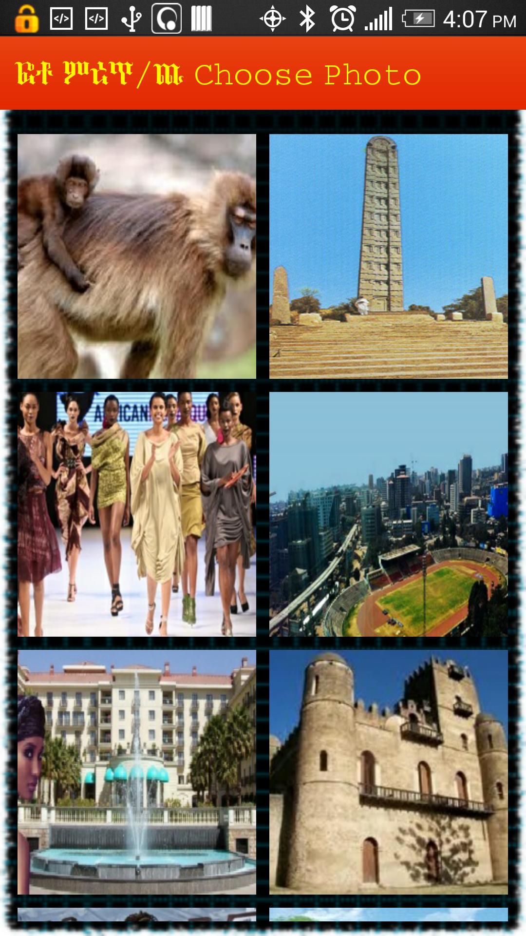 -> Ethiopian Picture Puzzle is a puzzle game to play puzzle with Ethiopian tourism reminder Pictures supported Amharic text.