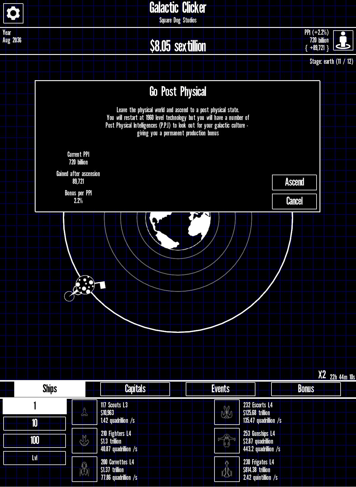 When you've reached a plateau, go post-physical and add Post Physical Intelligences (PPI) to look out for your galactic culture - giving you a permanent production bonus.