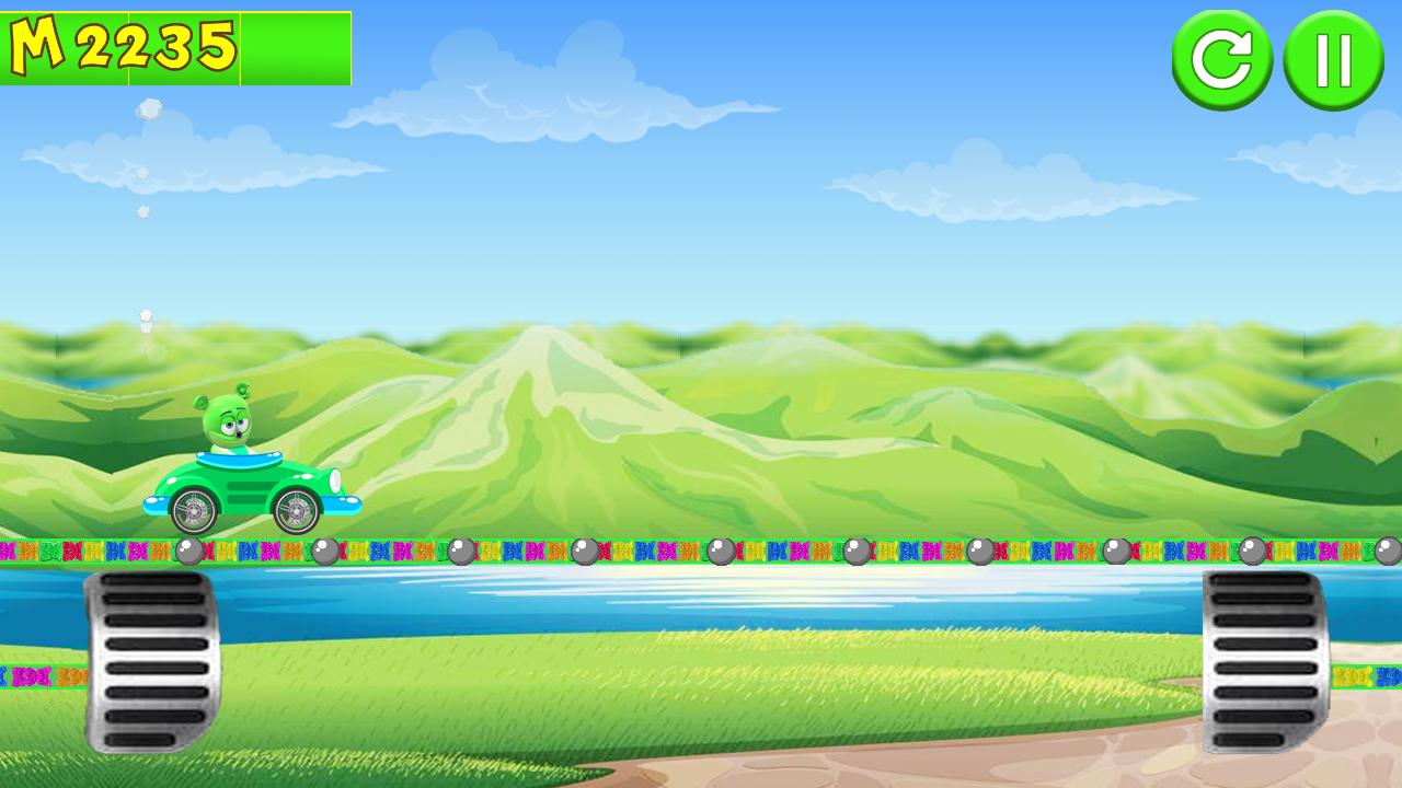 Face the challenges of unique Gummy Bear Climber environments with many different cars. Gain bonuses from daring tricks and collect coins to upgrade your car and reach even higher distances. Watch out though - Gummy bear's stout neck is not what it used to be when he was a kid! And his good old gasoline crematorium will easily run out of fuel.