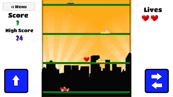 The controls are very easy but the game is challenging. Left button is for long jump to the next platform while left button is for short jump to avoid the cars on the same platform.