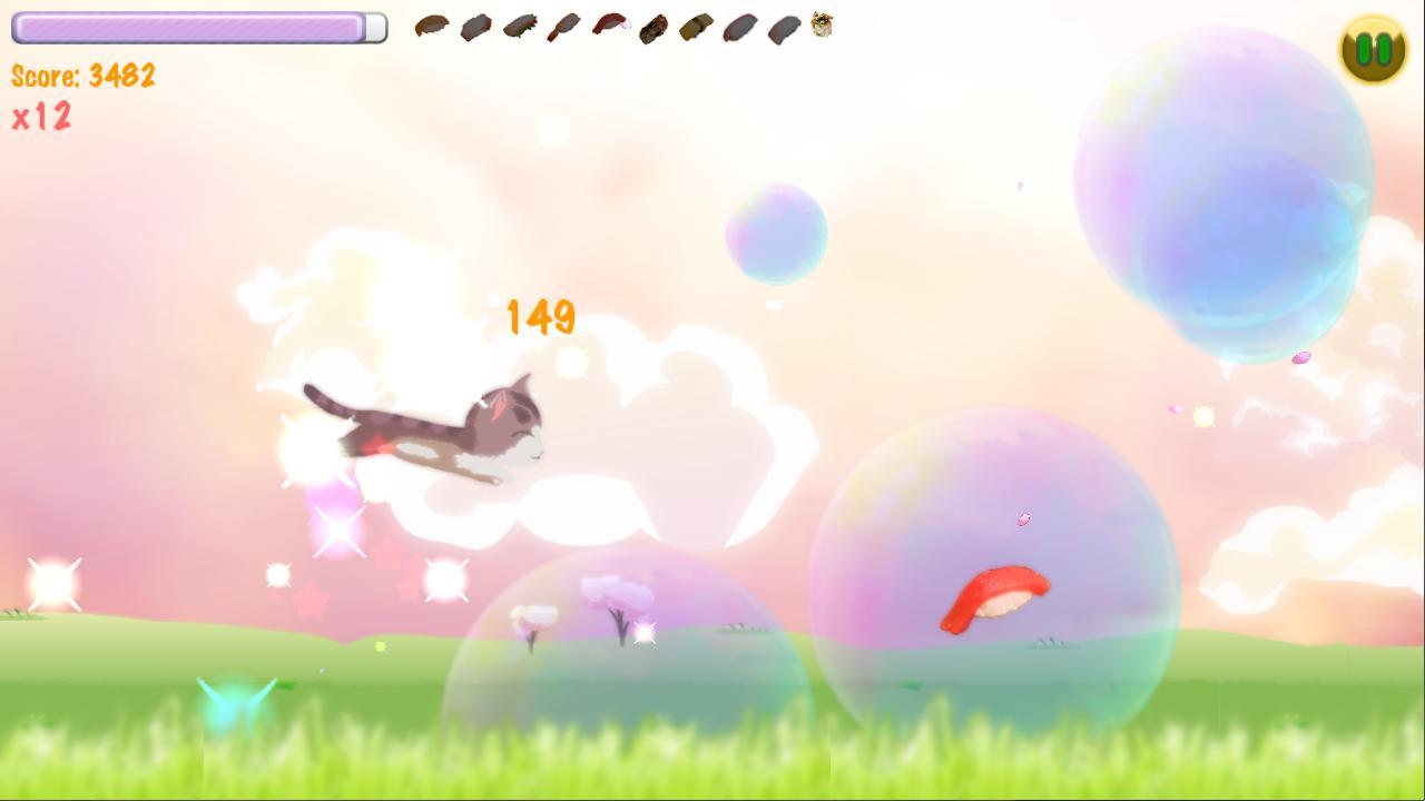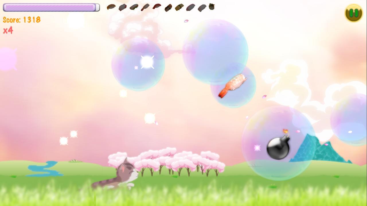 Help Nuj, the adorable kitten, pop as many bubbles, and eat as many