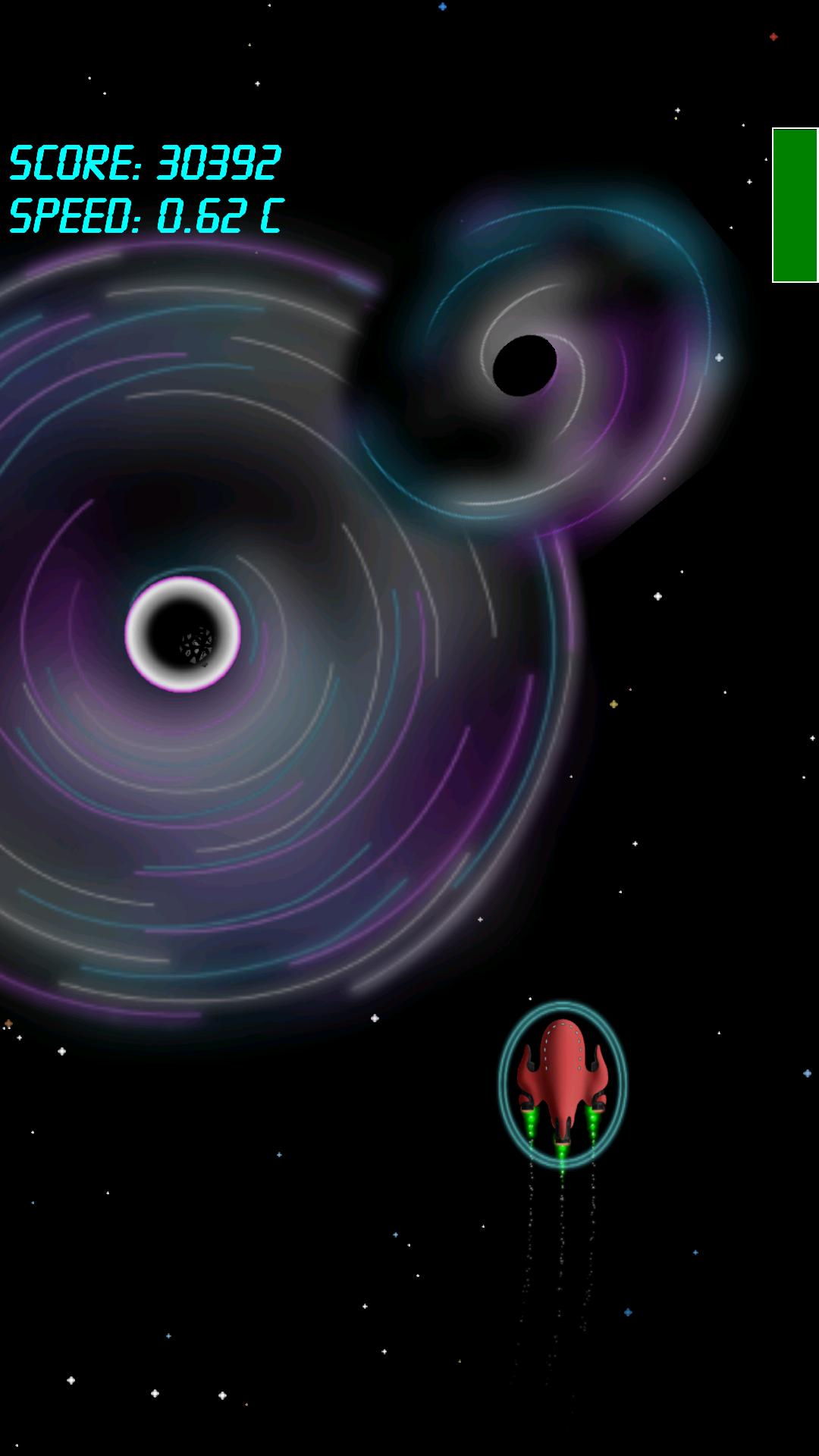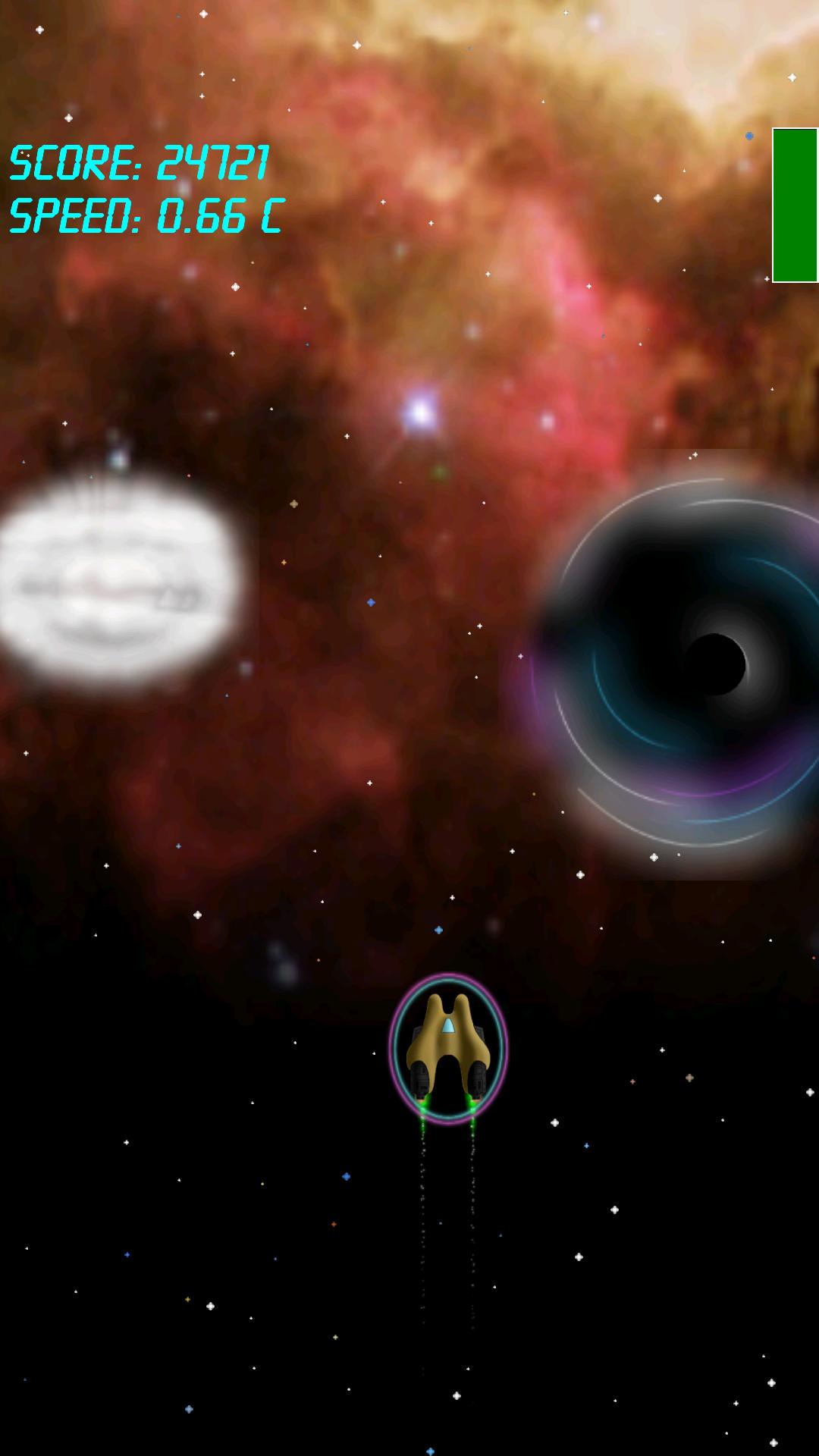 Race your way through the perils of deep space at the speed of light! Skim past deadly black holes, dodge through harrowing asteroid fields, and explore magnificent nebulae in pursuit of the highest score. Use the gravitational pull of black holes and your ship's boost capability to achieve extreme speeds. Choose between three spaceship classes to suit your personal flying style and unlock custom paint schemes for each. Different zone types provide plenty of varied space racing action to explore.