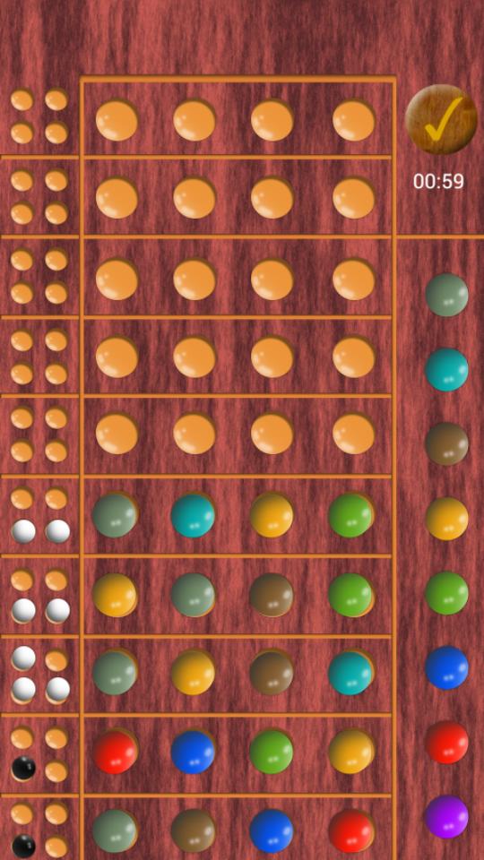 This game offers eight colors and two levels. Easy, which does not allow duplicate colors in the secret code or Hard mode which allows duplicate colors.