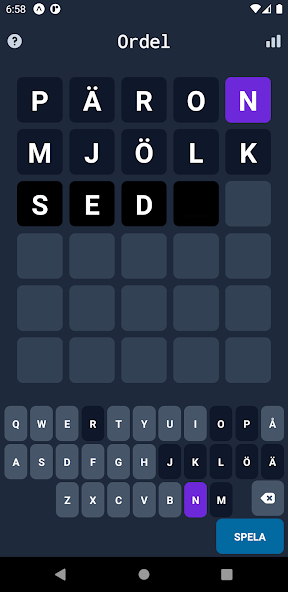 Sweden's most popular daily word puzzle - you have 6 attempts to guess today's word. Who can guess the word in the fewest tries? Inspired by the popular English game Wordle.
