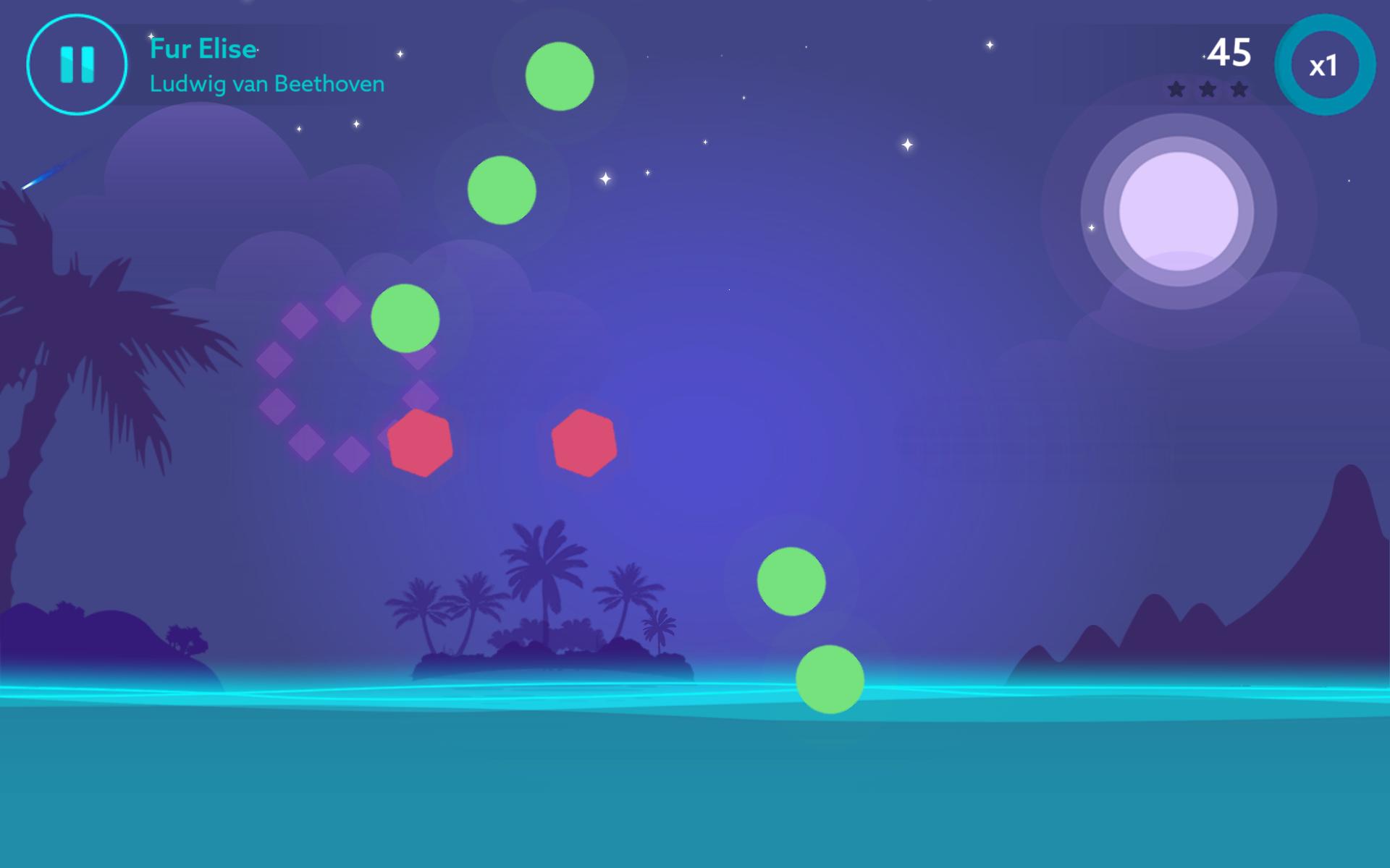Just use fingers to tap Falling Stars when they reach the water surface. Use same number of fingers with the Stars, feel the melody, and keep your rhythm and relax your soul with the magical sound of Piano and other instruments.