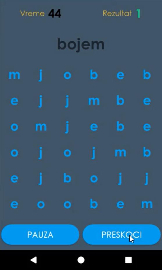 The objective of the game is to find the given word in a series of letters on the screen in any direction (horizontally vertically slanted)