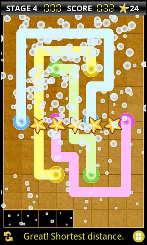 It is really simple to play; but the higher you reach, more difficult it will be. The shorter you connect, the more points you get. Keep in mind that you need to well-connected the first line or the rest of the lines will be all tangled. The number of stars will be rated as you pass each stage. You can earn up to 5 stars per stage. Try to earn all 5 stars!