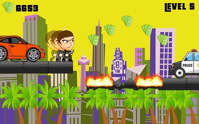 Help your player Sam Adams to collect coins and cash to pass all the challenges of being in a gang. Sam is new to the city in Miami. You need to help Sam to complete the missions to become the most wanted and powerful man in the gangster city. The streets are full of gangsters and crime, you must become the leader by completing super fun levels. Earn respect from other thugs and mobsters.