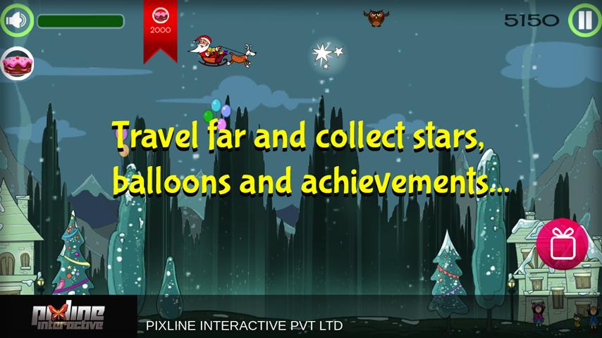 * Tap the screen to guide Santa on his sleigh without hitting the owls, the houses or the evil spirits.