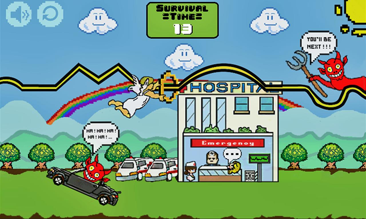 You must control the angel against the lines which are sent by devil! And you should control the ring delicately! Don't forget to collect the hearts which will increase your points and help you to save the heart of the young girl!