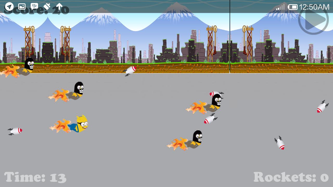 It's a new good fly game like slug and minion character in Slugterra and Despicable me. Collect rockets on the sky and then press fire button to launch a rocket to explode ghoul . Also you need to collect coin or the game will be over. Avoid collisions with other ghouls. keep slug in out driving faster than other at last to win the game and hope you will got High Score on Leaderboard. enjoy!
