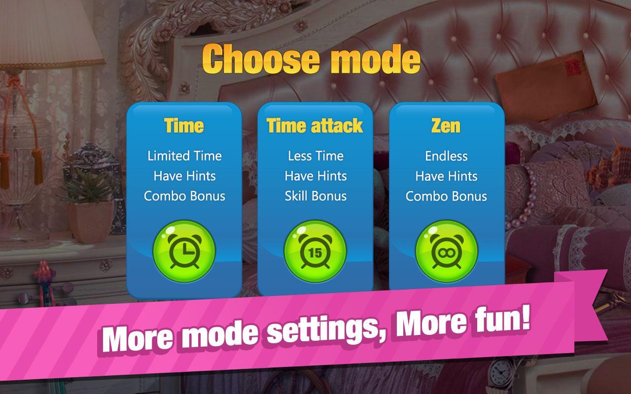 - Time attack: less time, have hints and skill bonus