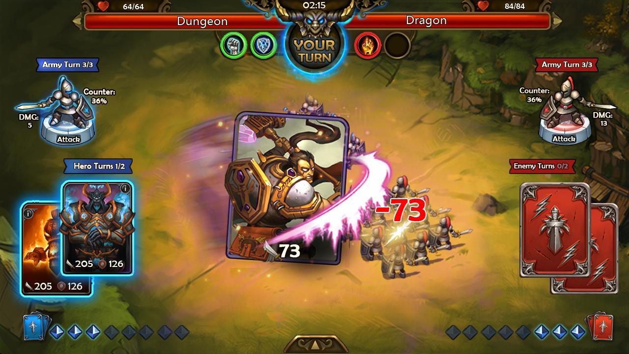 Select from multiple Hero classes depending on your play style. Over 100 Heroes at your command with each having a legendary combat skill to slay any opponent. Fuse and evolve your Mage to make them stronger. All the classic CCG mechanics are available here.