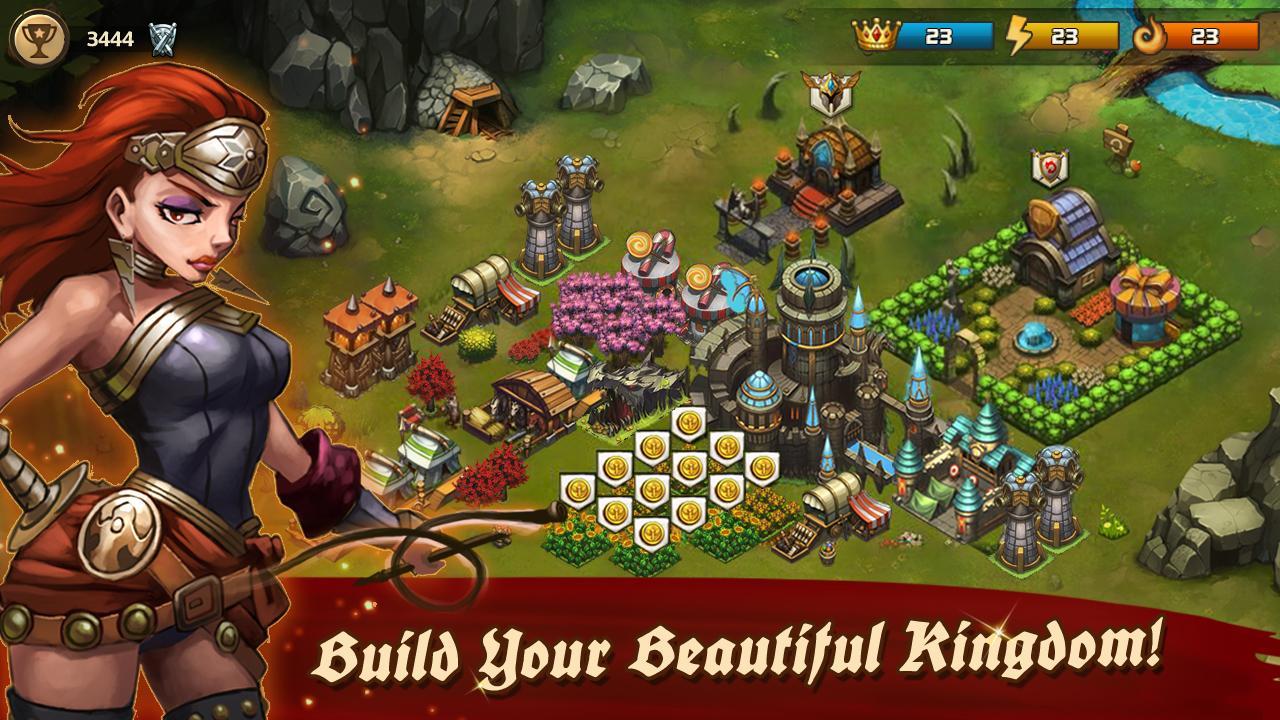 Build a mighty fortress and scare away the raiders. Hire faithful protectors in your defense buildings to gain experience from every successful defense.