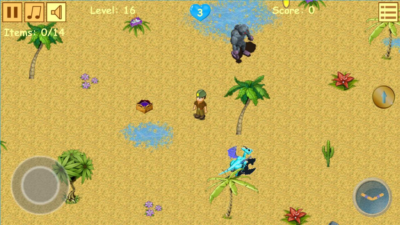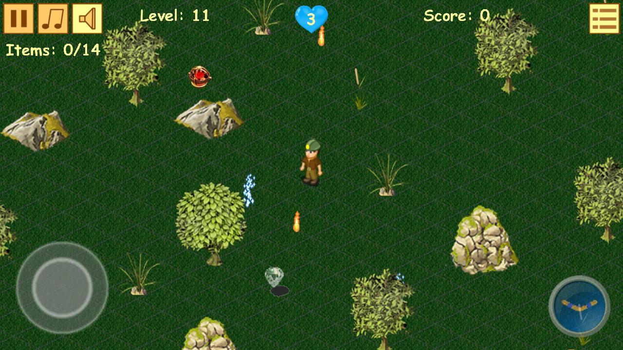 Help the treasure hunter to survive.Avoid danger creatures and objects.