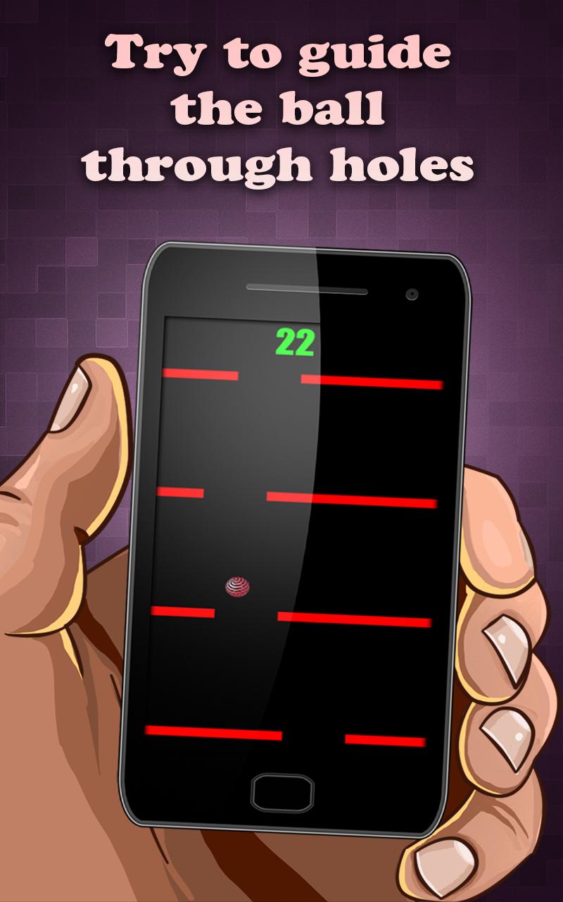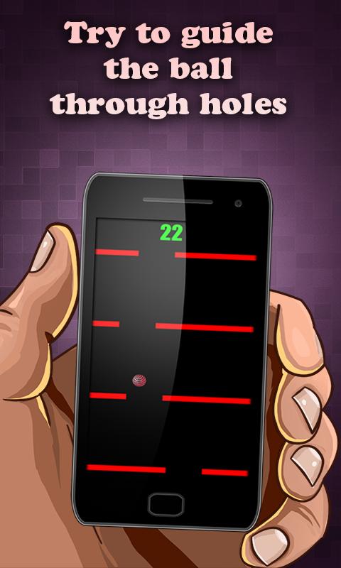 Drop the ball through spaces between lines to earn points. Don't let the ball get off screen at the top. As game progresses lines will move up more quickly.