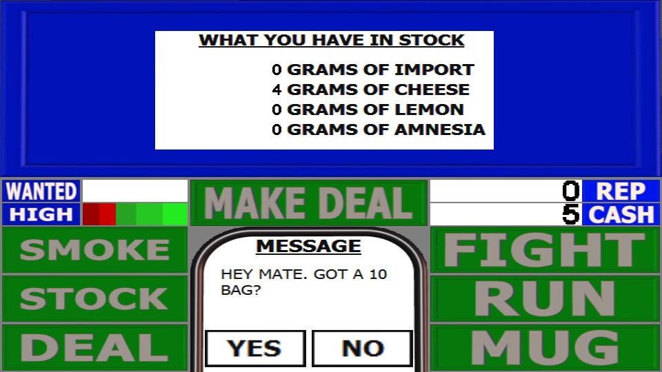 If you see a police man instead of your customer you had better run quick! If you run you'll lose a little cash and 1 gram from each of your weed. But if you are caught you'll lose all your weed.
