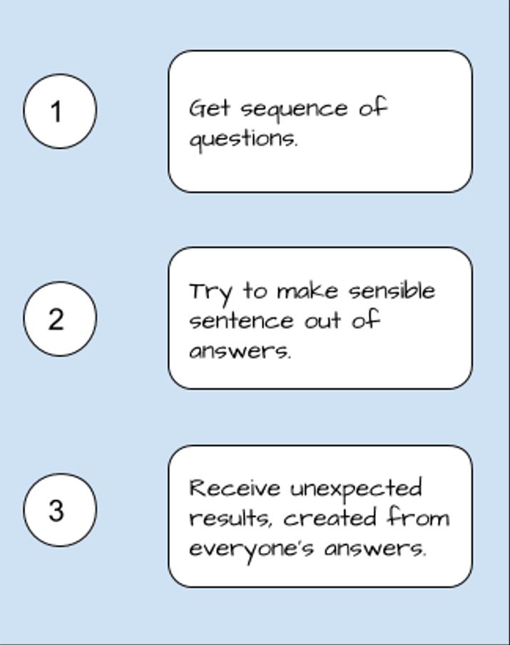 2. Answer to questions- "Why, Where, Who, With Who, Did What, Why", while trying to make sensible, funny and creative sentence.