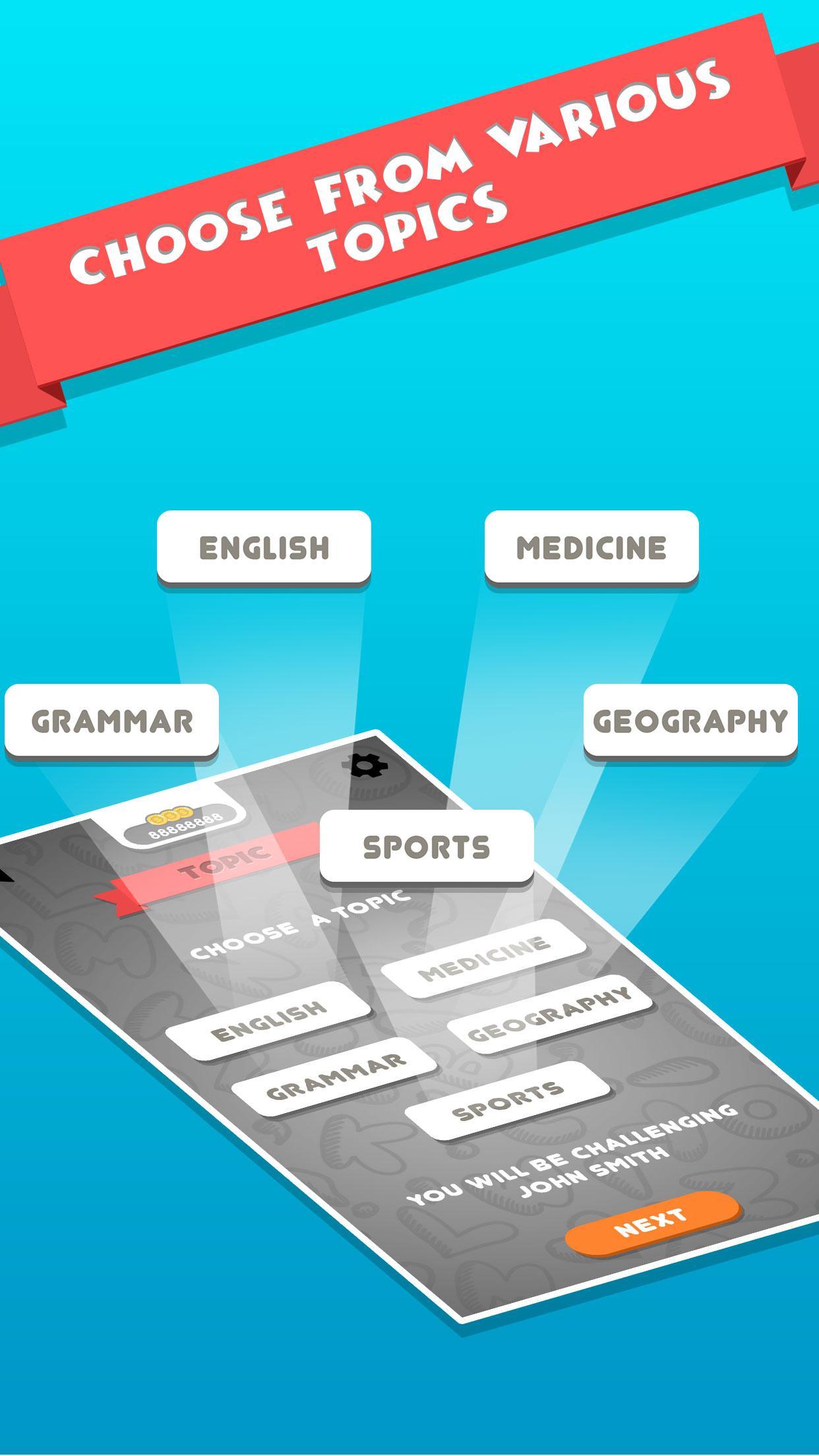 >Lots of topics to choose from! Show your expertise! > Challenge your friends and see who's the boss!