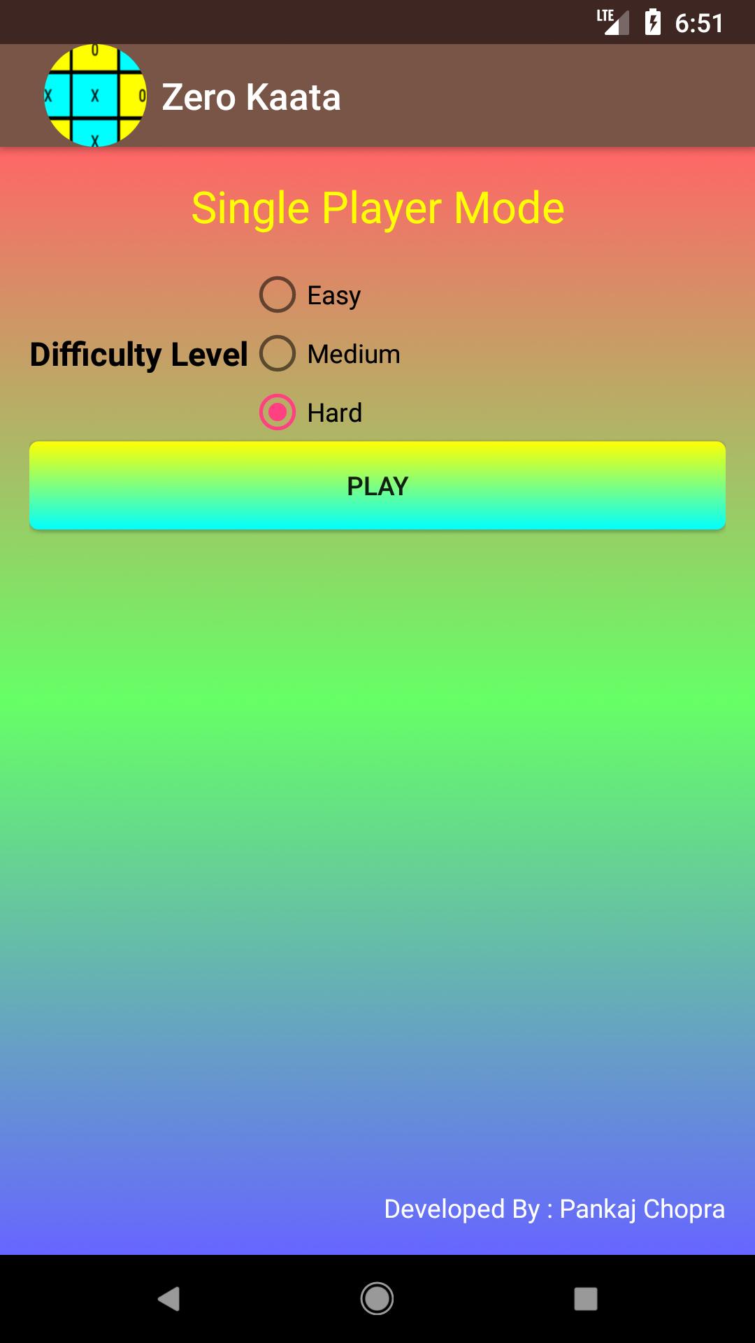 - User can play against CPU with 3 difficulty levels i.e., easy, medium and hard.
