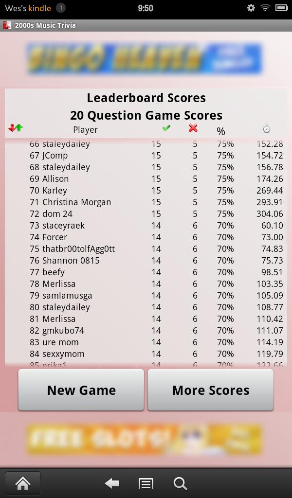 Game 2000s Music Trivia ini akan menanyai pengetahuan Anda tentang segala hal yang ditawarkan Dekade Pertama Milenium dalam musik ... Britney Spears, Eminem, Madonna, Green Day, Pink, Dido, Beyonce, Coldplay, Kelly Clarkson, Justin Timberlake, Maroon 5, Gwen Stefani, Evanescence, Nickelback, dan Nickelback, Ipod.