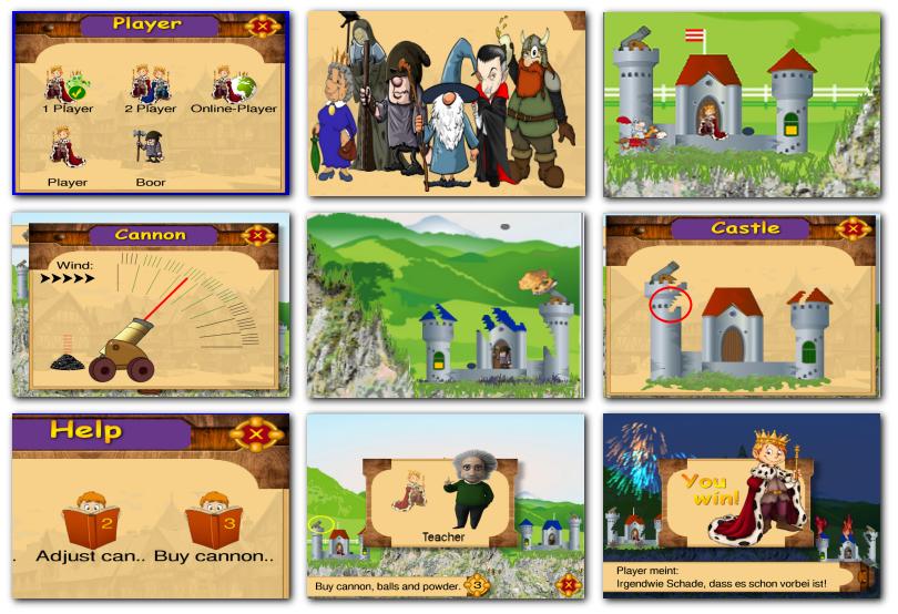 Dua kastil dan bukit di antara mereka. Itulah situasi untuk rajumu dan "boor" prajurit jelek di sisi lain bukit. Hapus kastilnya atau dia akan menghapus milikmu. Ditembak dengan meriam, beli bola dan bubuk senjata, perbaiki kastil Anda dan cobalah untuk bertahan hidup.