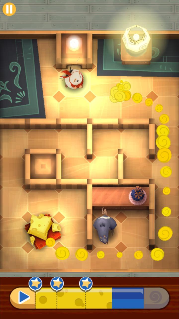 Cukup gambar jejak dari keju ke mouse, lalu tekan tombol Putar dan mouse akan mengikuti jalan setapak. Membuat kesalahan? Geser jari Anda pada bar aroma untuk undo tak terbatas yang sangat tinggi!