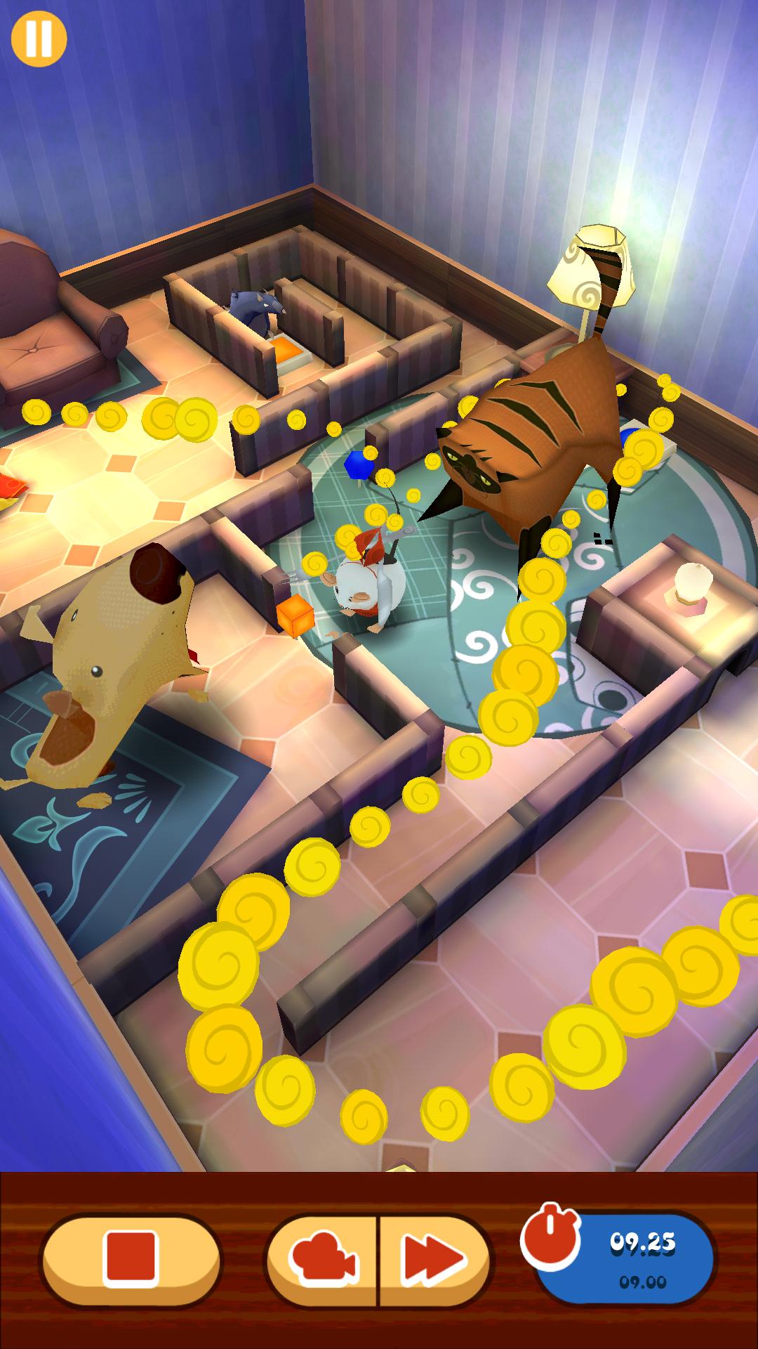 Ini adalah kehidupan yang sulit untuk menjadi tikus di rumah maniak pembuatan labirin ... menginjak tombol, dan pintu mungkin terbuka untuk membuka blokir ke jalan ke keju ... menginjak yang lain, dan penyedot debu mungkin muncul dari bawah untuk menyedot jejak kecil! Lihatlah ke sekeliling untuk mengetahui semua efek yang dipicu oleh tombol!