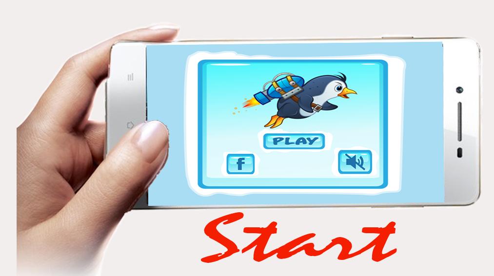 Aturan permainan itu mudah, kami cukup mengklik layar untuk memindahkan penguin ke atas dan ke bawah, sambil memindahkan emas yang Anda kumpulkan di layar.